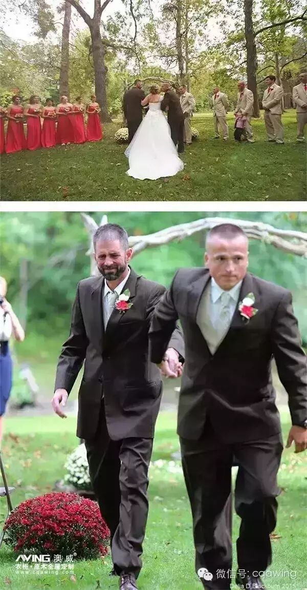 新娘的爸爸在婚礼时邀请新娘的继父上台。
