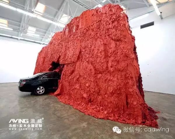 一辆奔驰轿车撞向了画廊中央,一座由大量红色颜料堆砌起来的墙。创作这样一件作品的成本是巨大的,最终效果更是难以制。但此种看似疯狂的举动却另有表达。过剩材料,不稳定结构不正好隐喻着中国这个背负沉重历史、但飞速发展的国家现状么?如此耗时耗力耗金钱的做法是朱金石超越名利,对于艺术本身的执着追求,更是他用作品表达思想观念的一种手段。